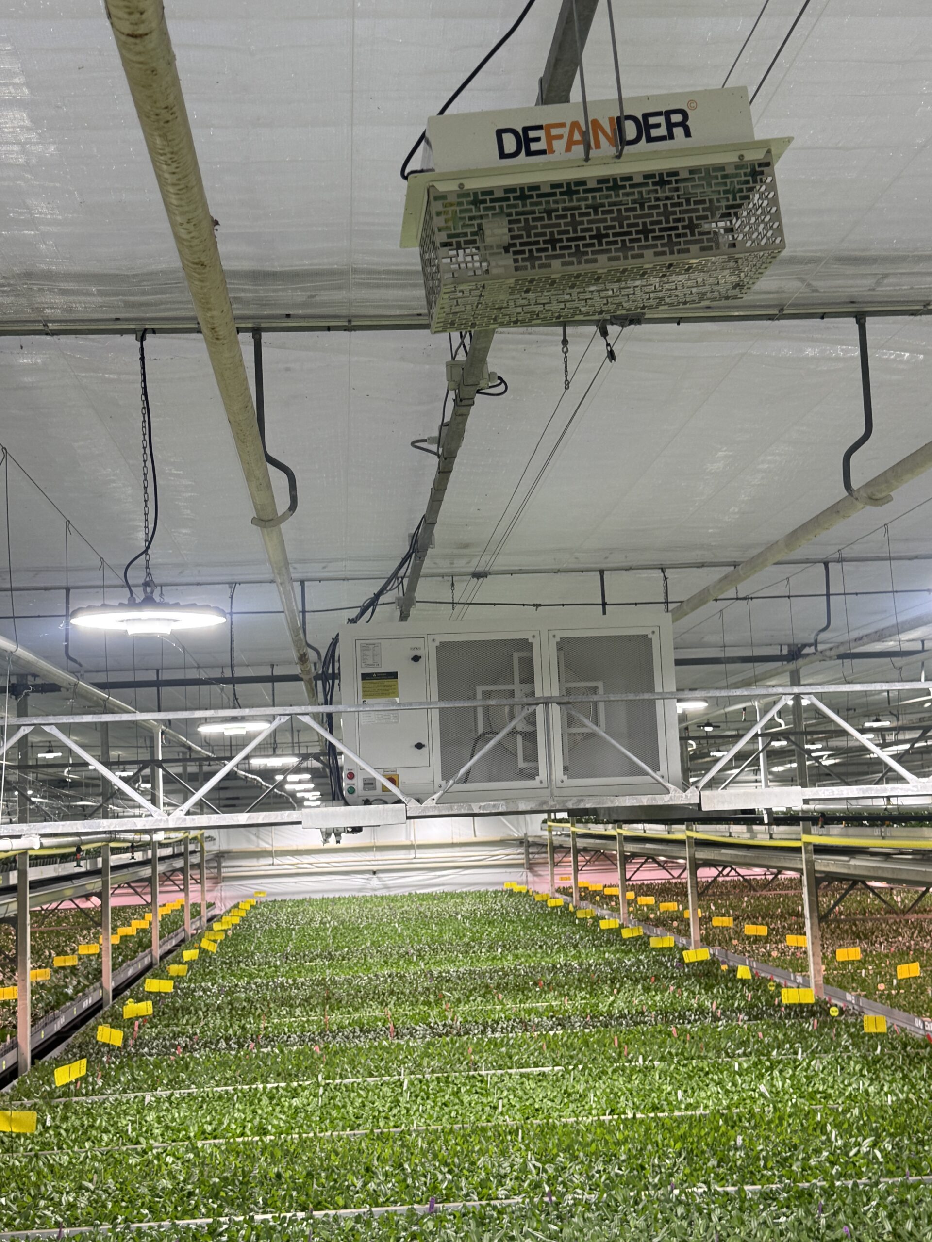 De DEFANDER maakt gebruik van geavanceerde luchtontsmetingstechnologie die direct op uw bestaande ventilatoren wordt aangesloten. Terwijl de lucht circuleert, worden pathogenen in de luchtstroom geëlimineerd vóórdat ze het gewas bereiken. Het resultaat: aanzienlijk minder uitval, lagere kosten voor chemische gewasbescherming en een structureel gezonder kasklimaat.
